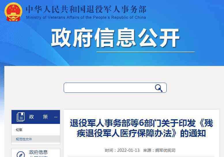 ?为切实保障残疾退役军人的医疗待遇,近日退役军人事务部等6部门发布关于印发《残疾退役军人医疗保障办法》的通知。那么残疾退役军人医疗保障办法发布!具体什么时候施行?附政策全文!