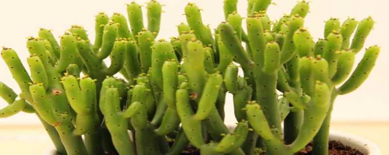 绿玉树又名光棍树,是一种造型奇特的多肉植物,其全株少花少叶,成株后花叶脱落,只有密集生长的枝干,像一颗插满了棍子的树。下面我们来看看绿玉树的养殖方法吧: