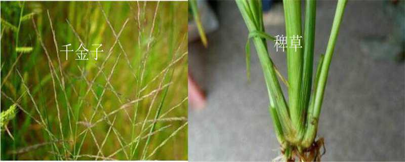 一、千金子与稗草区别 1、从外形上看,稗草、千金子和秧苗最明显的区别部位在叶片与叶鞘的结合处。在结合处,水稻具有毛状叶耳、剑状叶舌;千金子具有短叶舌;而稗草没有叶舌、叶耳,结合部位光滑。 2、从叶片上看,秧苗的主叶脉与叶片颜色一致,为绿色或深绿色,而稗草、千金子的主叶脉呈灰白色。 3、从田间整体上观察,成片的千金子叶片颜色较水稻、稗草要浅,浓绿色的为水稻或稗草,浅绿色的为千金子。