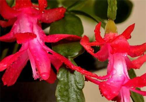 冬季室内温度维持在15℃,低于5℃会被冻伤。晴朗的白天可接受少许阳光直射,夜间寒冷可将植株用大号塑料袋罩住,防止冻伤。 4、光照 蟹爪兰是短日照植物,若每天能接受8~10小时光照,2~3月即可开花。总之就是光照长能促进生长,光照时间短会阻碍生长! 二、嫁接蟹爪兰养殖注意事项 1、蟹爪兰花后有段休眠期,此时要控水停肥,休眠期后,花芽长出恢复正常管理。另外在夏季,因为温度过高,蟹爪兰处于对自身的保护,也会被迫进入休眠期。此时适当减少浇水,加强通风,温度升高后会逐渐恢复生长的。 2、在生长过程中,因为蟹爪兰自身养分消耗的原因,花落之后会出现叶片发软的现象,这属于正常现象。但花后蟹爪兰的状态是比较差的,要控制好浇水量,避免烂根。在植株恢复期间,可以将萎蔫的叶片顶端剪掉。 3、蟹爪兰不能在烈日下暴晒,会灼伤植株,造成茎叶萎黄脱落甚至死亡。 |