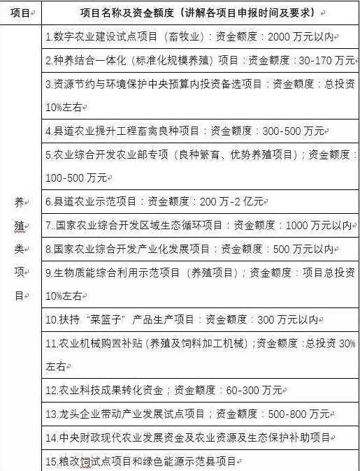 根据日前农业农村部通知的2019年中央农业建设投资计划草案编报工作要求,2019年,中央投资农业绿色发展工程重点补助5个建设项目,具体如下: 1、整县推进畜禽粪污资源化利用项目 重点支持规模养殖场粪污处理利用设施、粪污处理配套设施改造升级、区域性粪污集中处理中心和规模化大型沼气工程建设;从2018年起,国家发改委会同农业农村部整合及优化相关中央投资专项资金,重点支持畜牧大县整县制推进畜禽粪污资源化利用基础设施建设。2018-2020年之间,从在全国586个畜牧大县中,每年择优选择项目试点县,开展畜禽粪污处理和资源化利用设施建设;到2020年完成200个以上试点县推进任务。 2、水产健康养殖项目 水产健康养殖项目;主要支持实施养殖尾水治理、生态健康养殖示范、稻渔综合种养示范、盐碱地渔农综合利用示范、养殖装备提升等;农业农村部每年都会实施水产健康养殖示范创建。 3、农业面源污染综合治理项目 主要支持农业环境突出问题治理中面源污染治理、农业综合开发区域生态循环农业,包括标准化清洁化生产、农作物秆秸综合利用、废弃农膜回收利用试点、农药包装废弃物回收、有机肥替代化肥,兼顾资源利用的多样化和废弃物处理的不同方式。 4、农业绿色发展先行先试区 农业绿色发展先行先试区;主要支持在国家可持续发展试验示范区开展农业绿色发展先行先试,采用菜单式方式,整体设计推进资源节约和高效利用、绿色高质高效创建、产地环境治理、生态保护修复,补齐短板、创新机制。 5、草原建设保护与利用项目 主要支持退牧还草、农牧交错带已垦草原治理等草原保护与建设,包括建设人工饲草地、舍饲棚圈(储草棚)、围栏,改良退化草原,治理毒害草、黑土滩、岩溶草地等。