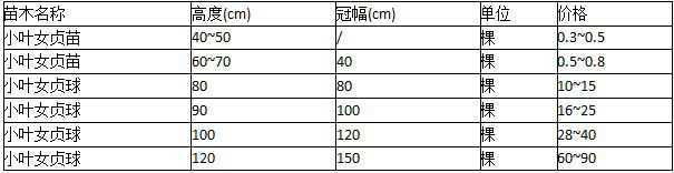 一、女贞树种子怎么种? (一)春季播种 1、种子的采集 女贞的种子一般会在每年的年末,也就是11月份-12月份间发育成熟,这时候就是采集种子的最佳时期。首先需要选择一棵看起来比较健壮、树形还有各个方面看起来都比较优秀的女贞树。从这样的女贞树种收集到的种子长出来后比较健壮。然后需要用剪刀把果穗减下来,薅下来果实,之后放到清水中一个星期左右再把果皮去掉,然后洗干净放干就可以了。 之后需要对种子进行湿藏,到第二年的春季三四月份拿出来用40℃的水泡一下就可以种植了。 2、种植的环境 首先需要选择一个背风、向阳的、具有良好排水和灌溉条件的地方。土壤的话要选择有机质较多的肥沃土壤,一般可以用沙壤土、轻黏土混合配置,这样有利于种子的发芽。 3、播种的方法 直接将种子撒到培植地点上,然后再盖上一层土。可以施加一定的肥料,一般以粪肥为主,这样有利于增加种子发育期间的养分,还可以促进它种子的发芽。 (一)冬季播种 女贞种子还可以进行冬季播种。一般情况下是在冬季封冻之前进行,不需要对种子进行其它的处理。种植方法和春播一样。 (三)播种后出苗后管理 女贞的小苗出土了之后一定要及时的清除杂草还有松土,这样有利于女贞苗的发育。女贞虽然喜欢比较湿润的环境,但是水分如果过多的话对其也没有很多的好处,所以一定要把控好水分。一般情况下,每天适当的对女贞苗喷洒水对其还是有一定促进发育的作用的。光照的话,不可以太强,夏季强光照射的时候需要适当的遮阴处理。 二、女贞树苗价格表 女贞树苗的价格各地有一定的差异,像大叶女贞树苗价格2公分6元,3公分11元,5公分45元。小叶女贞树苗价格高度≥20公分的小叶女贞树苗价格是0.02元/棵,具体如下表: