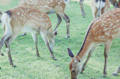 一、鹿喜欢吃什么? 鹿是典型的草食性动物,喜欢吃草、树皮、嫩枝和幼树苗,但每种鹿喜欢吃的不一样。如,梅花鹿主要采食藤本和草本植物,如葛藤、何首乌、明党参、草莓等;马鹿以乔木、灌木和草本植物为食,种类多达数百种;而驯鹿的食物主要是石蕊,也吃问荆、蘑菇及木本植物的嫩枝叶。 二、鹿怎么繁殖? 热带鹿没有固定的繁殖季节,一年发情多次,角不脱落;温带鹿晚秋至冬季交配,多数一雄多雌,每胎产1-2仔,多达3-4仔。其主要分布于欧亚、北美洲以及南美洲的南纬40°以北地区和非洲西南部。但每一种的鹿繁殖习性略有不同。例如: 1.驯鹿 每年9月中至10月为交配季节,争雌斗争激烈,性周期13-22天。受胎率较高,妊娠期225-240天,4-5月份产仔。每产1仔,偶有2仔者。哺乳期165-180天。雌鹿1.5岁性成熟,个别发育好的个体当年即能参加繁殖,一直到14岁,繁殖能力很强,雄鹿性成熟较晚。驯鹿寿命可达20年。