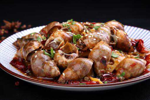 三、花螺怎么吃? 1.冰镇花螺 材料:花螺一斤;黄瓜半根 辅料:蒜末、姜末、芥末、生抽、冰块、香菜 做法:黄瓜切段,细长的红椒切圈,加入蒜末、姜末,加适量盐拌匀腌制一会。 2.辣酒煮花螺 材料:花螺500克、食盐4克、姜1小块、蒜5瓣、八角2个、桂皮1块、生抽半勺、红尖椒2个、小葱1根、鱼露1勺、胡椒粉少许、江米酒1勺、白酒1勺、陈醋5g 新鲜的花螺,用小刷子把外壳刷干净,用盐水泡二十分钟,然后沥干水备用;姜、蒜切末、鲜红椒切小圈,甜酒汁和白酒以2:1的比例总成酒汁;锅子热油,小火将姜末、蒜末、一半的红椒圈炒香。然后加入一小碗水,再放入八角和桂皮煮开,小火煮十分钟;加入酒汁、鱼露、陈醋和剩下的红椒圈烧开,然后放入花螺煮四、五分钟即可,出锅前加盐、生抽、胡椒粉调味,撒葱花即可。 |