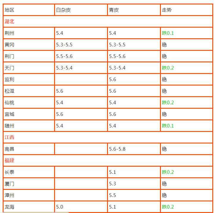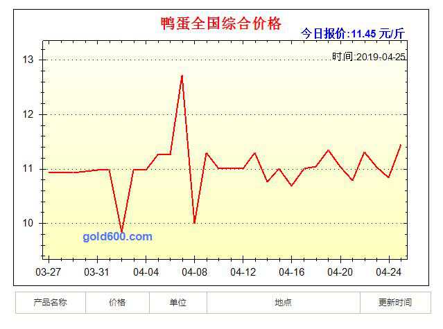 2019年11月24日全国鸭蛋收购价格下跌。今日最高价格6.4元,最低价格5.0元,今日鸭蛋价格行情汇总(价格仅供参考,不作为投资和交易依据)