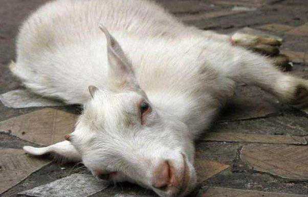 抓羊应抓羊腰背处的皮裘,不行直接抓腿,以防扭伤羊腿;也不行将羊按倒在地使其翻身,因羊肠细而长,这样易使羊形成肠扭转而导致逝世。羊捉住后,人骑在羊背上,用腿夹住羊的前肢固定好,便可喂药打针了。