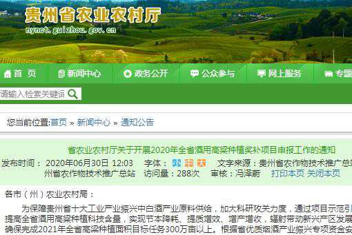 为提高全身就用高粱的种植技术含量、实现节能增收等,贵州农业农村厅发布了关于开展2020年全酒用高粱种植奖补项目申报工作的通知。其中,对于申报类型及资金补助,项目申报对象及程序等都有详细说明,详细内容请看下文。