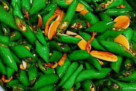 2、把准备好的食材全部放在一起,然后在锅中放入适量的色拉油,加热后放入生抽白糖和味精以及适量的白酒再放入食用盐,把他们调匀以后加热煮,开直成料汁,等它降温以后直接放在准备好的辣椒中调匀,以后腌制5~7天,就能得到腌好的辣椒。 辣椒的腌制技巧 平时自己在家中腌制辣椒的时候,一定要保证辣椒表面是干燥的,不能带入生水,其他食材也要晾干表面的水分,不然腌好以后的辣椒容易变质,另外在腌制辣椒的时候还可以放入适量的熟花生米,这样会让腌好以后的辣椒更有滋味。 今天重点为大家介绍了辣椒的腌制方法与技巧,能让大家知道怎样腌制辣椒好吃,今后大家再想吃腌制的辣椒时,就试着自己动手制作吧,相信大家自己腌制出的辣椒会比市场上卖的成品更好吃。