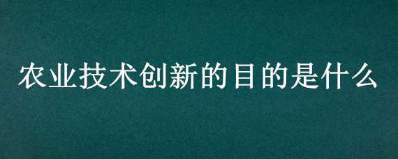 农业技术创新是指将农业技术发明应用到农业经济活动中所引发的农业生产要素的重新组合,那农业技术创新的目的是什么?