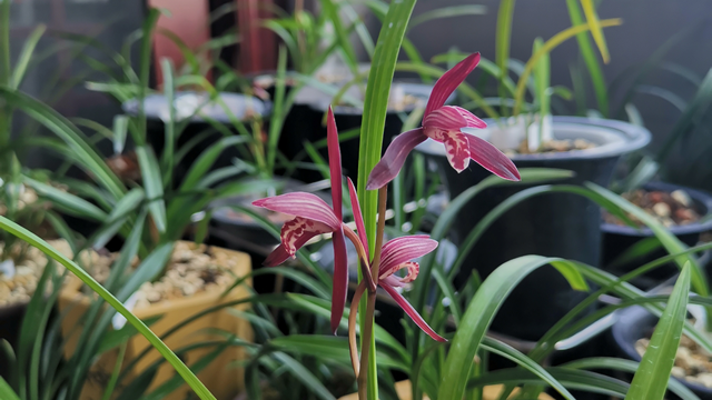 建兰墨宝真品鉴别要根据其特征,它属于四川产建兰色花,特征为中垂叶、叶面不平、常起波浪纹,草型健壮、叶姿优美、花大出架,花色红得发紫,花色稳定。