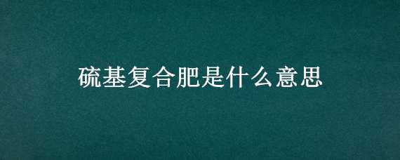 硫基复合肥是经济作物上常用到的肥料,那硫基复合肥是什么意思呢?
