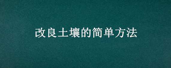 改良土壤是改善土壤性状,提高土壤肥力,为农作物创造良好土壤环境条件的一系列技术措施的统称。那改良土壤的简单方法是怎样的?