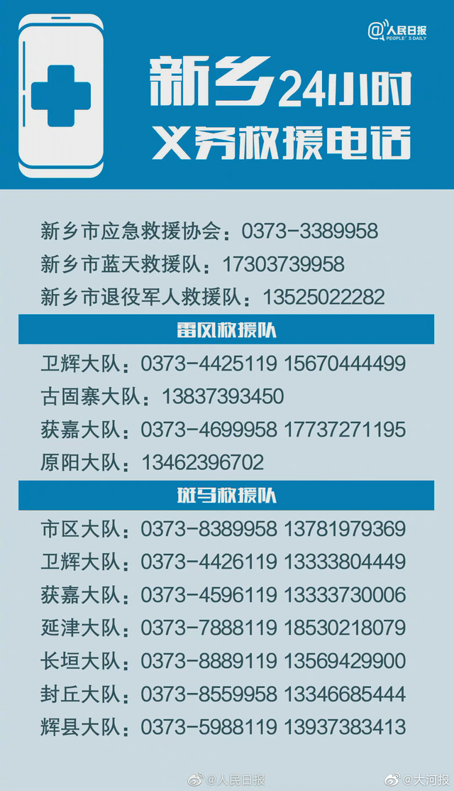 二、新乡哪里被淹? 1.新乡一村民开车被困地下道车身被淹 9时28分,新乡市获嘉县黄堤镇江营村一村民开车被困地下道。汽车车身已经被大水淹没一半,该男子坐在车顶等待求助。获嘉县消防救援大队接到报警后,随即赶往现场救援,趟着淹没到胸口的积水,将男子救出。 2.新乡学生目睹学校2小时被淹? 河南师范大学学生小陈(化姓)告诉极目新闻记者,21日下午6时许,雨势突然变大,学校里的积水越来越严重。“大概两个小时,宿舍楼下的积水就已经没过膝盖了。” 3.新乡市牧野区利民西院 家住新乡市牧野区利民西院的张女士发布救援信息称,水位迈过门了,快堵不住了,附近住户急需沙袋。张女士告诉极目新闻记者,他们家是未搬迁的老房子,房屋破旧。目前一楼已经进了水了,他们很担心雨水长时间浸泡后,会出现房屋垮塌的情况,只好先把贵重物品转移到安全的地方去。目前,张女士已拨打救援电话。新乡救援电话汇总如下: