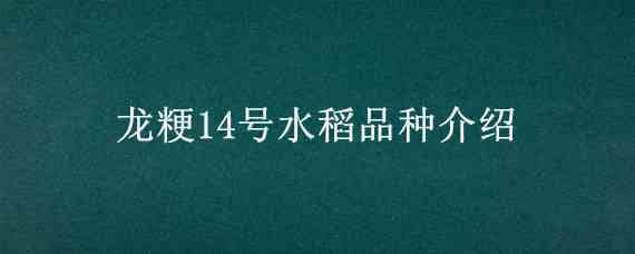 水稻以龙粳4号为受体,转导玉米黑301的总DNA育成的早熟新品种。龙粳14号水稻品种介绍如下:
