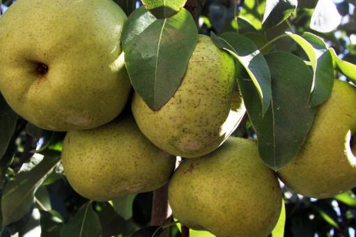4、冬季(12-2月)管理: (1)培养成型:冬季是培养黄梨树形状的好时机。可以修剪控制树冠的形状,确保树木稳定和牢固。 (2)清扫落叶:清除树下的落叶和杂草,以预防病虫害的滋生。 (3)灌冻水:在极冷的冬季,需要确保黄梨树根部不会受到冻害。可以适时地灌溉一些冻水,保持土壤温度稳定。 (4)刮树皮:冬季也是刮去树皮的好时机,以清除可能滋生病虫害的树皮表层。 (5)防冷措施:如果生长区域的气温极低,可以考虑在黄梨树四周铺设保温材料或设置风帘等防冷措施,保护树木不受冷害。 二、晚秋黄梨成熟时间是什么时候? 晚秋黄梨的成熟时间通常在10月份左右,当果面变成金黄色、散发出诱人的香气时,就是最佳的采摘时机。在采摘晚秋黄梨时,务必小心谨慎。通常可以用手轻轻扭动成熟的果实,如果果实轻松脱落,就表示可以采摘了。采摘时应使用剪刀或刀片,将果实修剪洁净,以免损伤植株。采摘后,黄梨可以在阴凉通风处储存,以延长保鲜期。