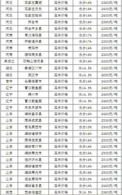 地区 价格(元/吨) 上海市 2850.64 上海市 玉米价格 14%水分 2850.64...