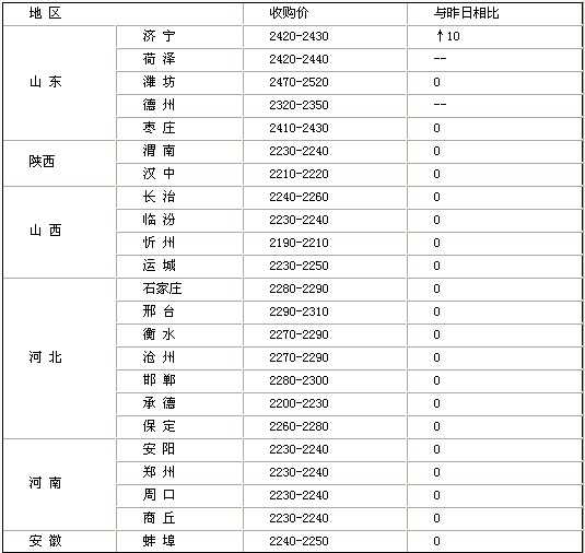 地区 价格(元/吨) 上海市 2854.42 上海市 玉米价格 14%水分 2854.42...