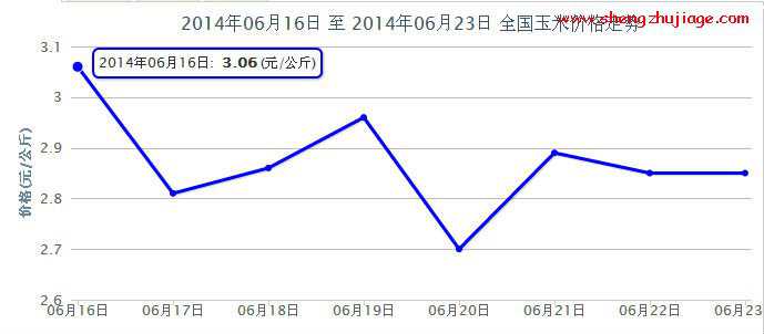 产品 价格 上周同期变化率 日期 供求信息 玉米价格行情 3.06元/斤 0.03% 2014-06-16 玉米价格行情 2.81元/斤 -0.05% 2014-06-17 玉米价格行情 2.86元/斤 -0.03% 2014-06-18 玉米价格行情 2.96元/斤 0.00% 2014-06-19 玉米价格行情 2.7元/斤 -0.17% 2014-06-20 玉米价格行情 2.89元/斤 -0.17% 2014-06-21 玉米价格行情 2.85元/斤 -0.09% 2014-06-22 |