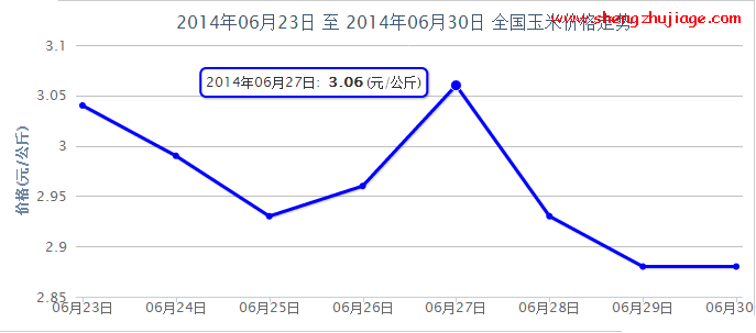 产品 价格 上周同期变化率 日期 玉米价格行情 3.04元/斤 -0.01% 2014-06-23 玉米价格行情 2.99元/斤 0.06% 2014-06-24 玉米价格行情 2.93元/斤 0.02% 2014-06-25 玉米价格行情 2.96元/斤 0.00% 2014-06-26 玉米价格行情 3.06元/斤 0.13% 2014-06-27 玉米价格行情 2.93元/斤 0.01% 2014-06-28 玉米价格行情 2.88元/斤 0.01% 2014-06-29 |