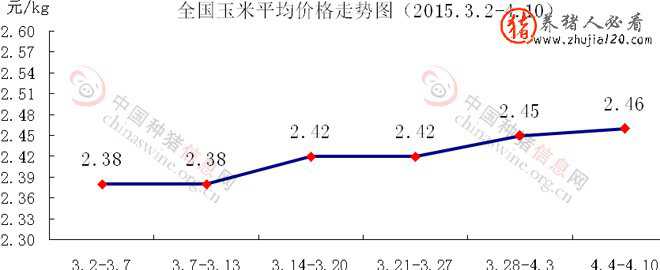 全国玉米平均价格走势图(2015.3.2-4.10),如下: