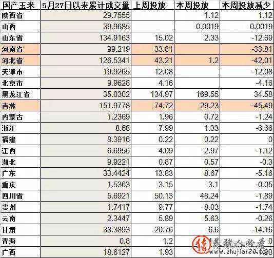 上周末开始,伴随着国内临储玉米累计成交量超过800万吨,华北玉米1000万吨轮换指标大致尽成,东北1000万吨轮换玉米稳定进行中,国内玉米价格持续涨势浮现松动,以此前“领头羊”山东深加工企业为代表的玉米收购价格首度浮现显然归调。不过,考虑到目前玉米市场政府控盘依然,本周临储拍卖开启“区域性调控”新模式,JCI预计国内玉米市场尚不至于比往年提前迎来跌势。固然,在我国玉米价格水平还没有与小麦市场平起平坐的时候,市场的机会应该说还会有的,策略如何实施是当下的关键所在。 ◎ 上周末华北产区玉米深加工收购价格浮现高位归调 上周末,山东多地玉米深加工企业挂牌价格浮现集体归调,幅度达到50-60元/吨,不少企业挂牌价格由前期2000-2050元/吨归落到2000元/吨附近。参见下图。简单来看,华北玉米价格归落与三方面因素有关:其一,新季小麦上市(尤其是芽麦等低价麦源涌入市场,推动饲料企业踊跃抢购,河南、安徽地区芽麦收购价格仅1600元/吨附近,显然低于当地饲料企业1900-2000元/吨的玉米收购价);其二,临储玉米拍卖持续投放,一定程度缓解前期供应紧张局面,市场看涨心理有所弱化;其三,部分地区粮商尚有余粮,惜售心理减弱。