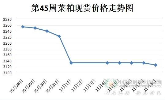 本周菜粕现货价格稳中有跌。湖北奥星菜粕报价为3250元/吨,广州加籽粕价格为3000-3050元/吨,广西防城港菜粕报价为2950元/吨。进入十一月,气温降低,水产对菜粕需求减淡,加上豆粕市场弱势运行,对菜粕现货价格有一定的压力。加拿大菜籽的到港,也会对菜粕现货价格起到压制作用。 |