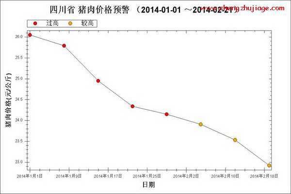 2014年1月~2月第3周猪肉市场零售均价走势图