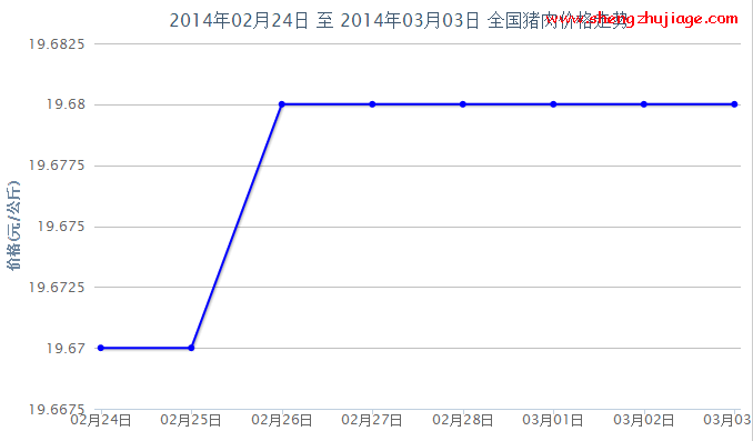 2022年11月26日全国各省市猪肉(白条肉)价格走势 单位:元/公斤 河南省内黄县猪肉(白条肉)30.00 甘肃省凉州区猪肉(白条肉)34.00 河北省玉田县猪肉(白条肉)32.00 河北省新乐市猪肉(白条肉)38.00 广东省普宁市猪肉(白条肉)...