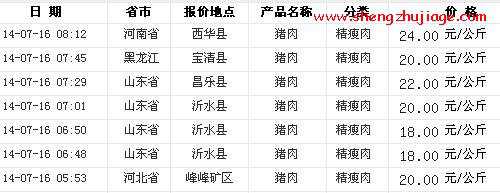 2014年7月16日各地的猪肉(精瘦肉)价格行情,如下: